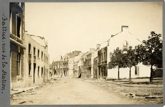 Ak Battice Herve Wallonien Lüttich, zerstörte Häuser ander Bahnhofstraße
