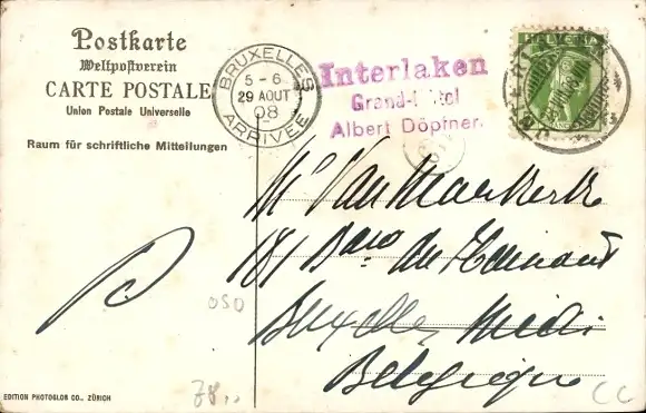Zustand, siehe Scan, gelaufen, 1908 - ca 14 cm X 9 cm