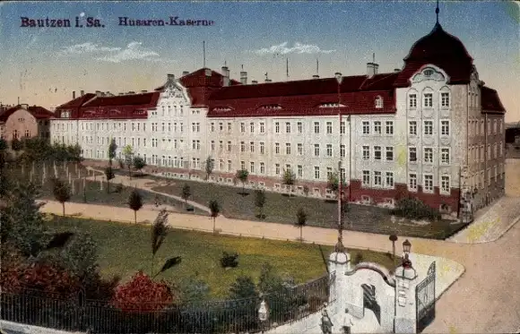 Ak Bautzen Sachsen, Partie an der Husaren Kaserne