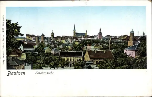 Ak Bautzen, Totalansicht, Häuser, Bäume, Wasserturm