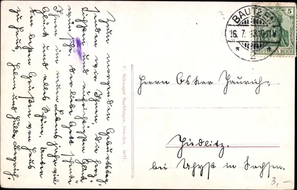 Zustand, siehe Scan, gelaufen, 1913 - ca 14 cm X 9 cm