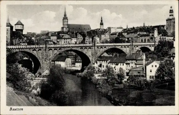 Ak Bautzen in der Lausitz, Ortsansicht mit Brücke