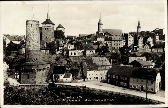 Ak Bautzen in der Oberlausitz, Alte Wasserkunst mit Blick auf die Stadt