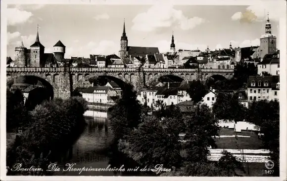 Ak Bautzen in der Oberlausitz, Kronzprinzenbrücke mit der Spree