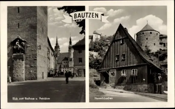 Ak Bautzen in der Oberlausitz, Rathaus, Petridom, Hexenhäuschen