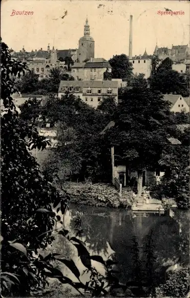 Ak Bautzen in der Oberlausitz, Teilansicht, Spree