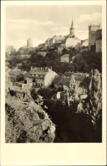 Ak Bautzen in der Oberlausitz, Teilansicht der Stadt, Felsformation, Turm, Kirche
