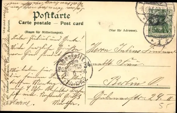Zustand, siehe Scan, gelaufen, 1906 - ca 14 cm X 9 cm