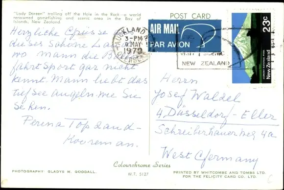 Ak Bay of Islands Neuseeland, Lady Doreen trailing off the Hole in the Rock, Fischerboot