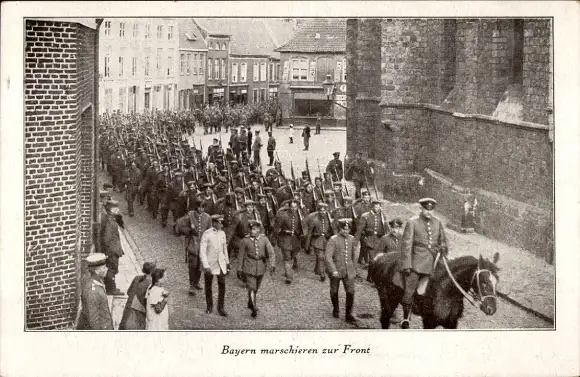 Ak Bayern marschieren zur Front, Soldaten, Pferde