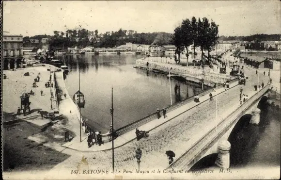 Ak Bayonne Pyrénées Atlantiques, Pont Mayou, Confluent