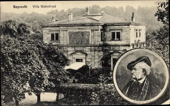 Ak Bayreuth in Oberfranken, Ansicht vom Haus Wahnfried, Portrait von Richard Wagner