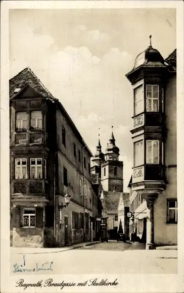 Ak Bayreuth in Oberfranken, Brautgasse mit Stadtkirche