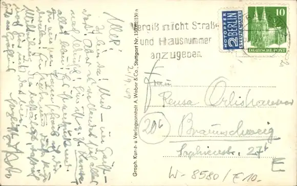Ansichtskarte, Postkarte, Kirche, Stadtkirche, Gotteshaus, Sakralbau