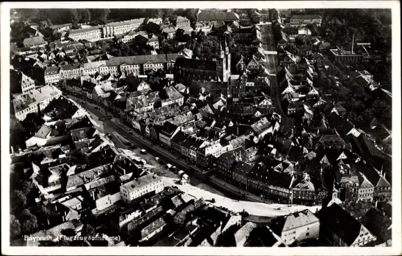 Ak Bayreuth in Oberfranken, Fliegeraufnahme, Blick auf Stadt und Kirche