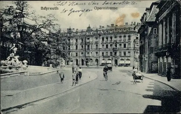 Ak Bayreuth in Oberfranken, Opernstraße, Denkmal, Passanten