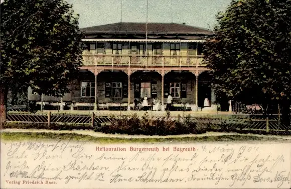 Ak Bayreuth in Oberfranken, Restauration Bürgerreuth, Gartenansicht, Menschen auf der Terrasse