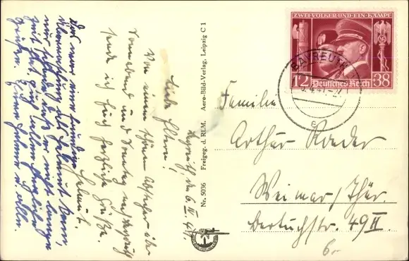 Zustand, siehe Scan, gelaufen, 1941 - ca 14 cm X 9 cm