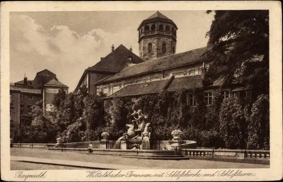 Ak Bayreuth in Oberfranken, Wittelsbacher Brunnen mit Schlosskirche u. Schlossturm