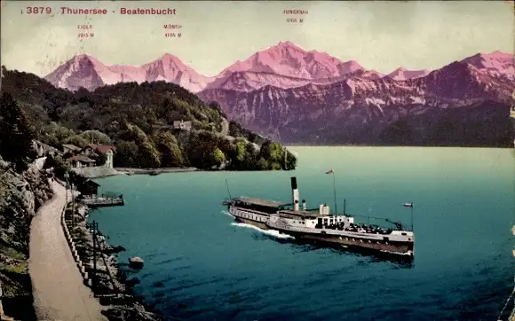 Ak Beatenberg Kanton Bern, Beatenbucht, Thunersee, Dampfer