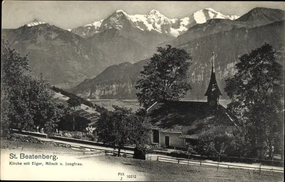 Ak Beatenberg Kanton Bern, Kirche, Eiger, Mönch, Jungfrau