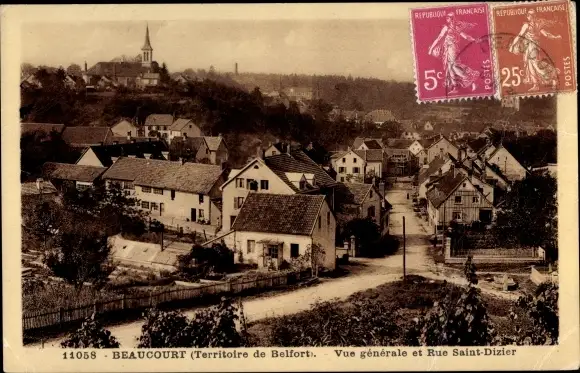 Ak Beaucourt Territoire de Belfort, Vue generale, Rue Saint Dizier