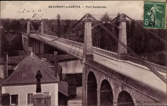 Ak Beaumont Sarthe, Pont Suspendu