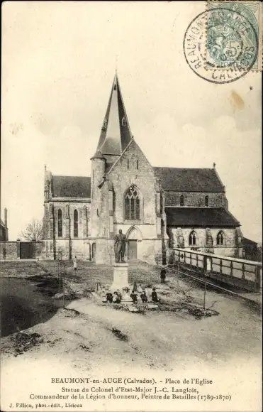 Ak Beaumont en Auge Calvados, Place de l'Eglise