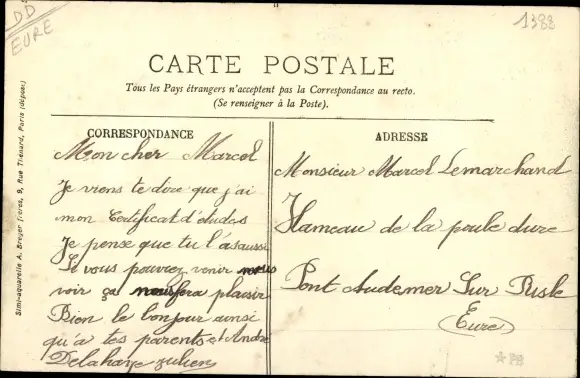 ungelaufen, Rückseite beschrieben, sehr guter Zustand