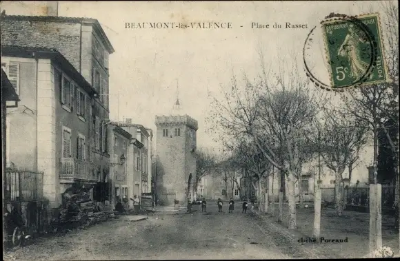 Ak Beaumont les Valence Drôme, Place du Rasset