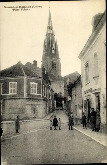 Ak Beaune la Rolande Loiret, Place Boisson, Eglise, Boulangerie
