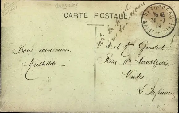 Zustand, siehe Scan, gelaufen, 1919 - ca 14 cm X 9 cm