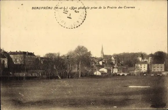 Ak Beaupréau Maine et Loire, Vue générale prise de la Prairie des Courses
