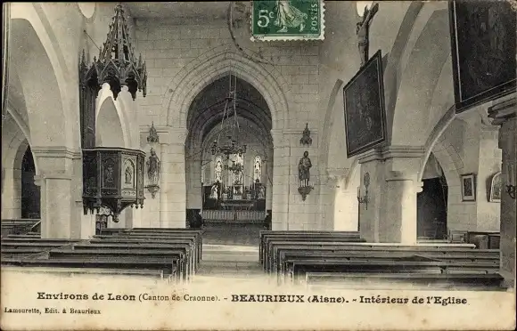 Ak Beaurieux Aisne, Interieur de l'Eglise