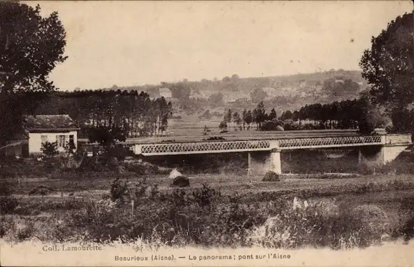 Ak Beaurieux Aisne, Panorama, Brücke