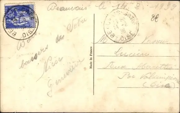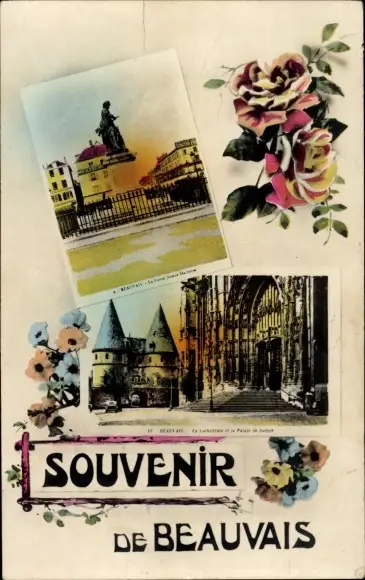 Ak Beauvais Oise, Statue, Gebäude, Portal, Blumen