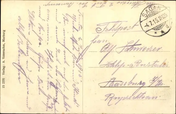 Zustand, siehe Scan, gelaufen, 1915 - ca 14 cm X 9 cm