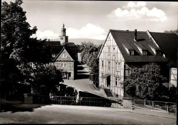 Ak Bebra an der Fulda Hessen, Teilansicht, Kirchturm, Fachwerkhäuser