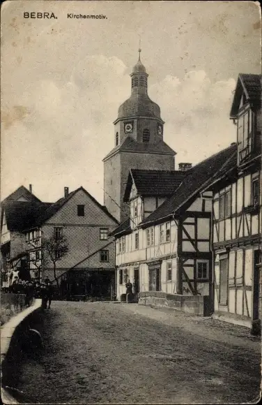 Ak Bebra an der Fulda in Hessen, Kirchenmotiv, Fachwerkhäuser