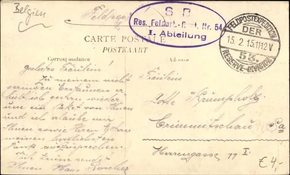 Zustand, siehe Scan, gelaufen, 1915 - ca 14 cm X 9 cm