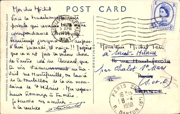 Zustand, siehe Scan, gelaufen, 1958 - ca 14 cm X 9 cm