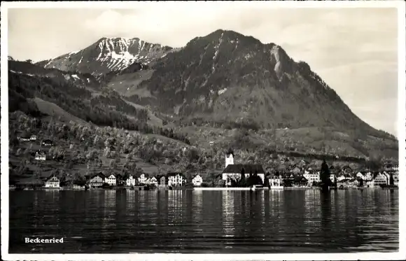 Ak Beckenried Kt. Nidwalden Schweiz, Gesamtansicht, Gebirge