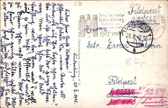 Zustand, siehe Scan, gelaufen, 1940 - ca 14 cm X 9 cm