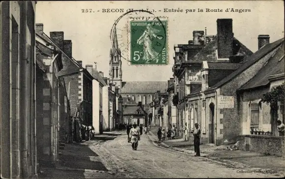 Ak Bécon Maine et Loire, Entrée par la Route d'Angers, Eglise