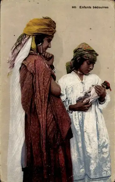 Ak Beduinen, Frau mit Tochter, Puppen, Maghreb