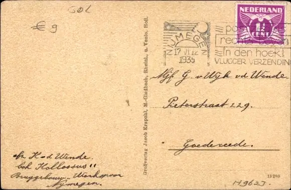 Zustand, siehe Scan, gelaufen, 1935 - ca 14 cm X 9 cm
