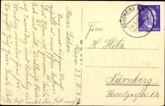 Zustand, siehe Scan, gelaufen, 1943 - ca 14 cm X 9 cm