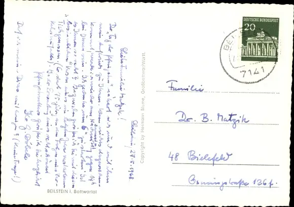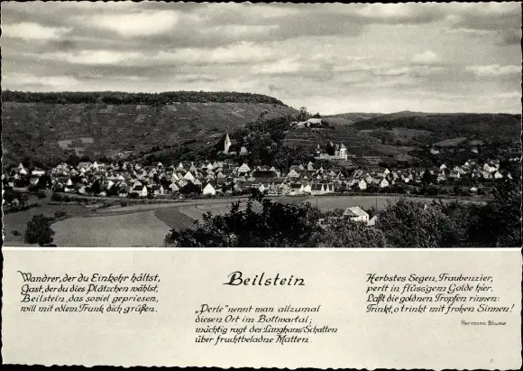 Ak Beilstein im Bottwartal, Panorama vom Ort, Gedicht von Hermann Blume