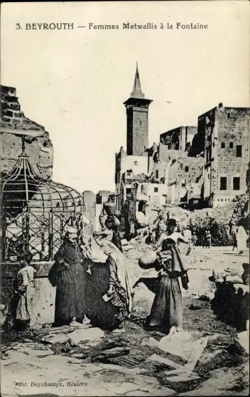 Ak Beirut Beyrouth Libanon, Femmes Metwallis à la Fontaine, Brunnen