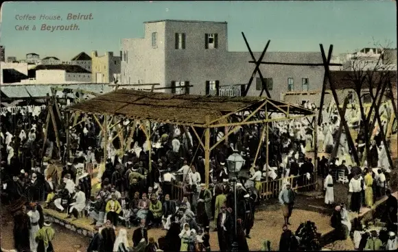 Ak Beirut Beyrouth Libanon, Gäste in einem Kaffeehaus auf dem Platz